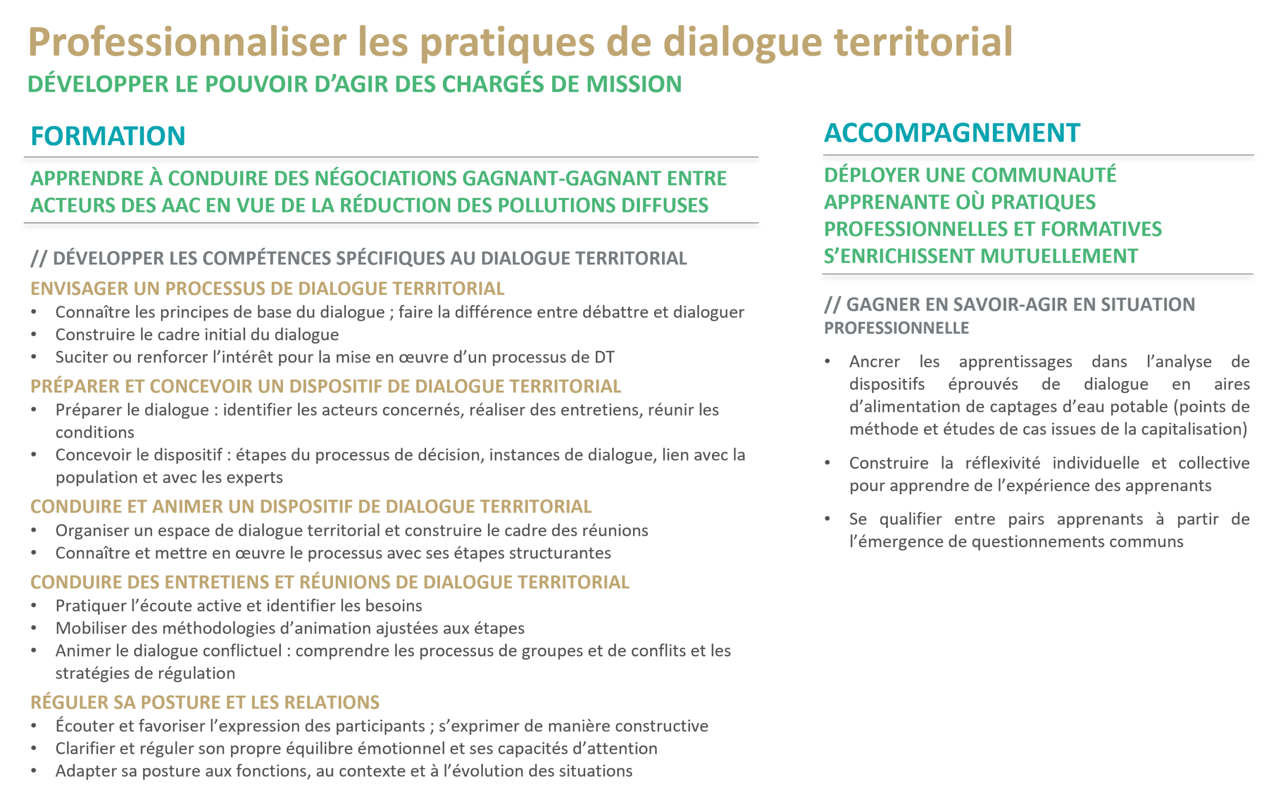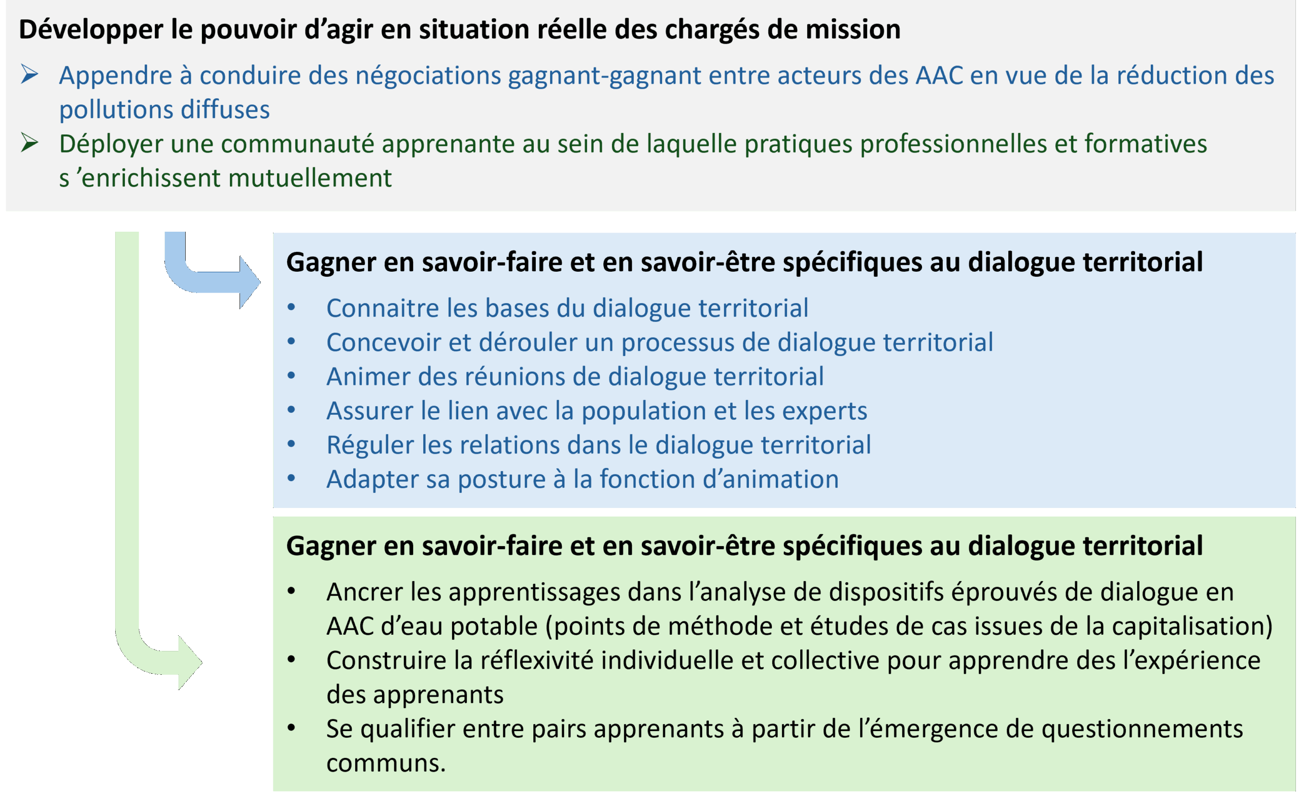- De renforcer les capacités des animateurs de captages, des directeurs de structures, des élus et des partenaires et financeurs